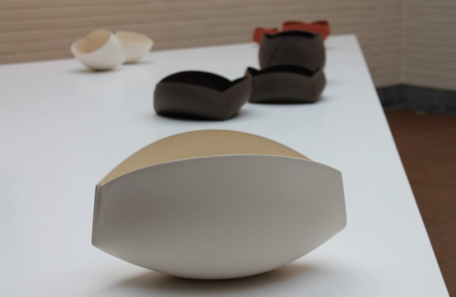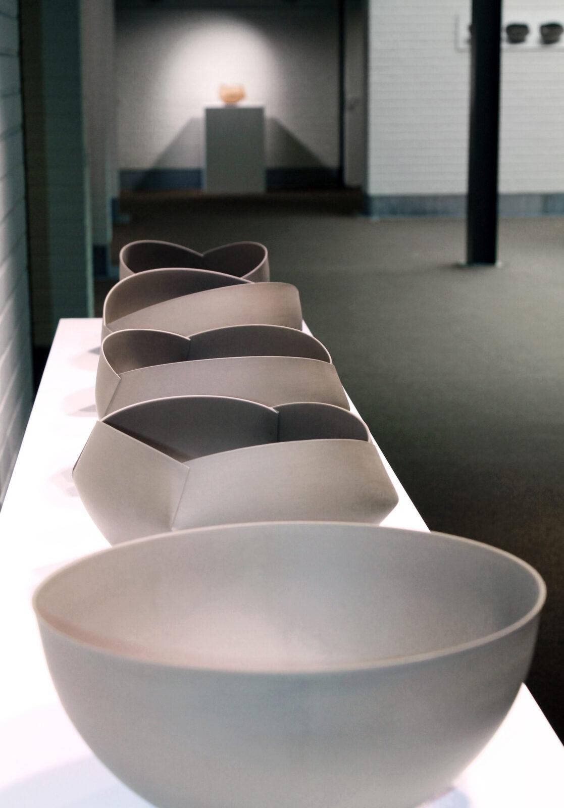 In her work Ann Van Hoey always starts from clay as the primal material. Guided by the basic geometric forms, she has developed a completely individual style, often using the technique of origami. Her ceramic creations have a sophisticated simplicity that radiates calm. Each object is the result of a search for perfection, gracefulness and purity. Given their lack of waterproofing and other functional requirements, the label as "utensils" for her pottery is not only inadequate, but almost inappropriate due to their beautiful aesthetic design. This exhibition gave an overview of Ann Van Hoey's career as a researcher and artist.